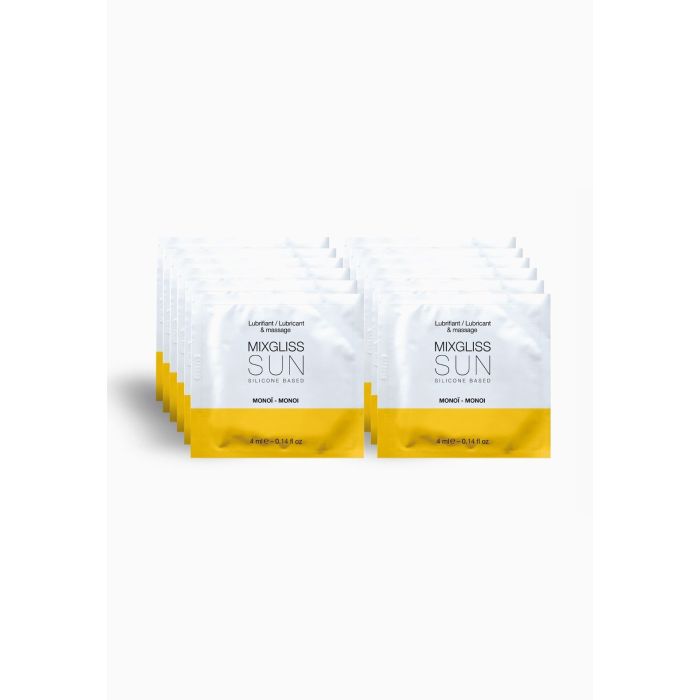 Інтимний лубрикант на силіконовій основі MixGliss SUN MONOI з ароматом екзотичної квітки моной, який дає легке розслаблення та свободу. Олія моной виготовлена з пелюсток таїтянської гарденії в кокосовій олії. Вона широко використовується серед французьких полінезійців як пом'якшувач для шкіри та волосся.