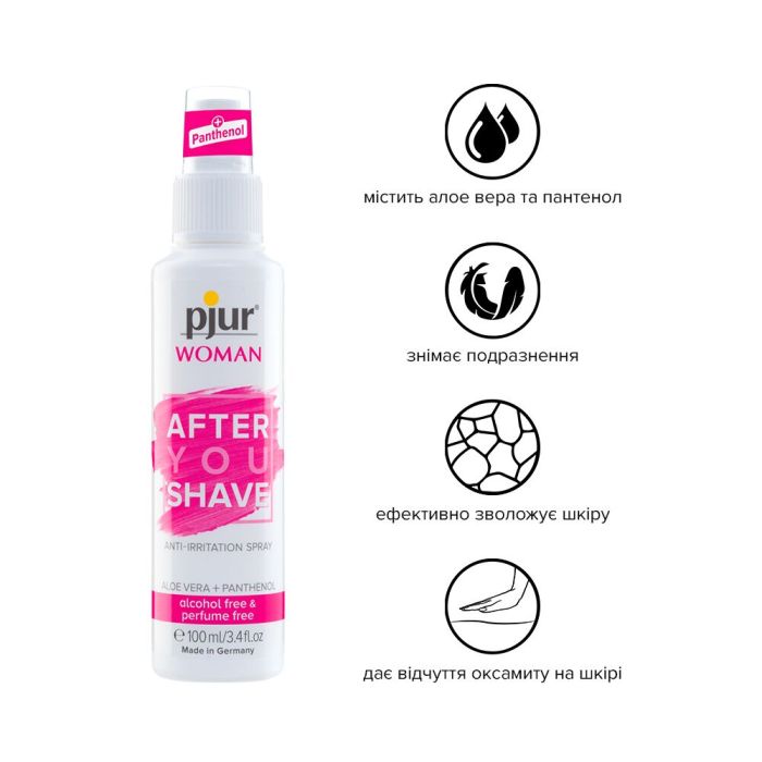 Спрей після гоління pjur Woman 100 мл з алое вера та пантенолом, не сушить шкіру, немає печіння