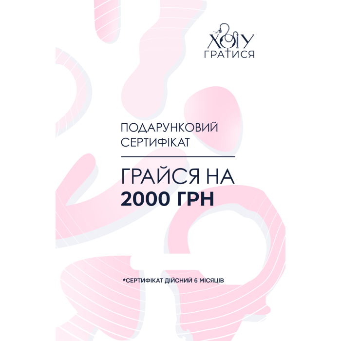 Як використовувати сертифікат Хочу гратися?Обирай товари до душі та тіла, а під час оплати за допомогою WayForPay введи код з сертифіката у поле ПРОМОКОД. Зауваж, сертифікат не ділиться на частини, залишок не вертається. А ще знижки на сертифікати не діють.