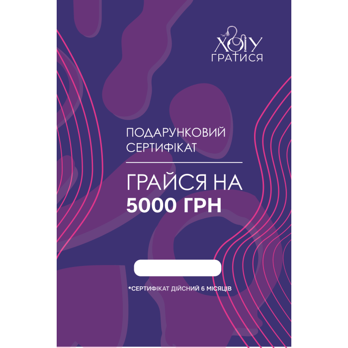 Як використовувати сертифікат Хочу гратися?Обирай товари до душі та тіла, а під час оплати за допомогою WayForPay введи код з сертифіката у поле ПРОМОКОД. Зауваж, сертифікат не ділиться на частини, залишок не вертається. А ще знижки на сертифікати не діють.