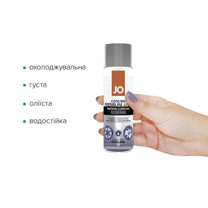 Лубрикант на силіконовій основі System JO ANAL PREMIUM — COOLING (60 мл) з охолоджувальним ефектом не містить консервантів і виготовлений із використанням силікону найвищої якості. Завдяки супергладенькій оліїстій консистенції продукт забезпечує довготривале та плавне ковзання без особливих зусиль.