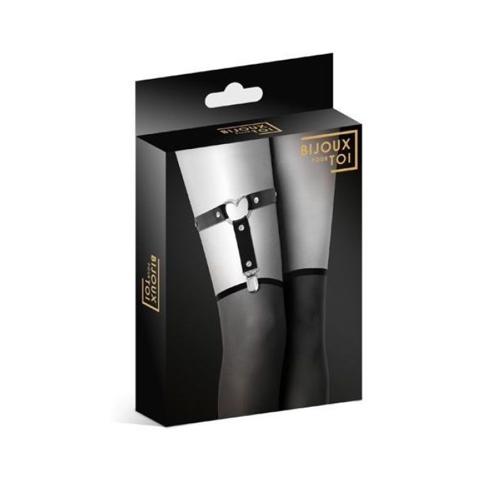 Гартер на ногу Bijoux Pour Toi — WITH HEART Black, сексуальна підв'язка з сердечком, екошкіра