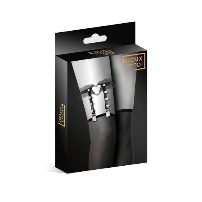Гартер на ногу Bijoux Pour Toi — WITH HEART AND SPIKES Black, сексуальна підв'язка з сердечком