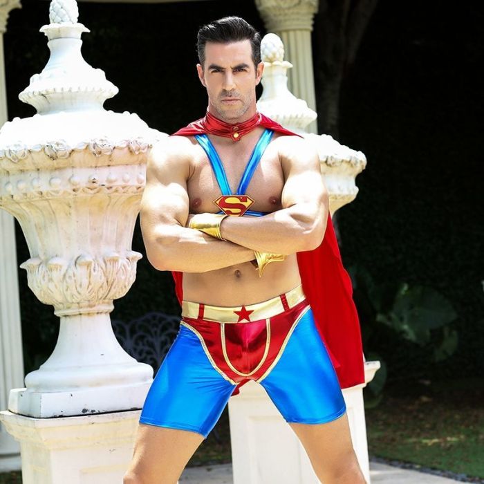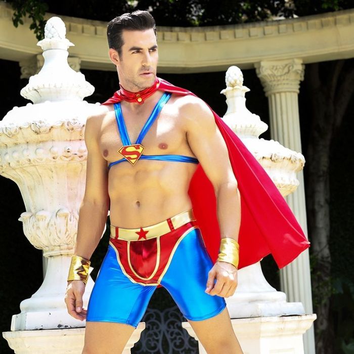 Чоловічий еротичний костюм супермена "Готовий на все Стів" S/M: плащ, портупея, шорти, манжети