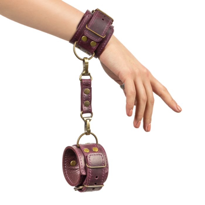 Преміальні наручники LOVECRAFT, фіолетові, натуральна шкіра, подарункове паковання