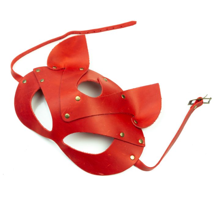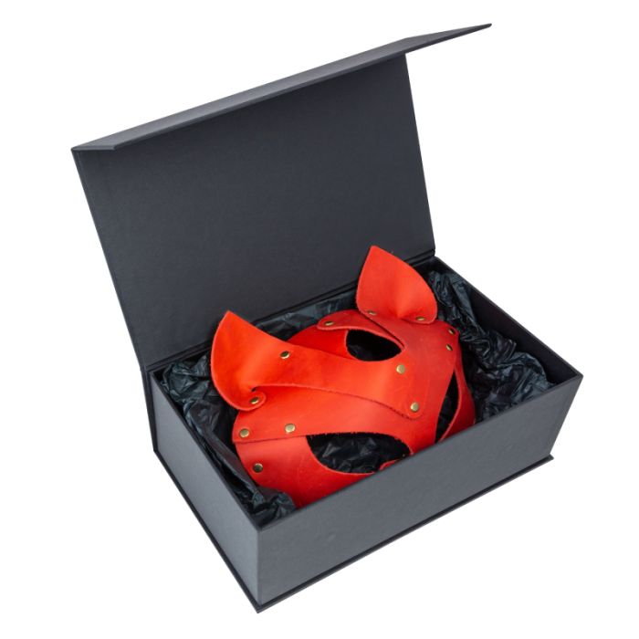 Преміальна маска кішечки LOVECRAFT, натуральна шкіра, червона, подарункове паковання
