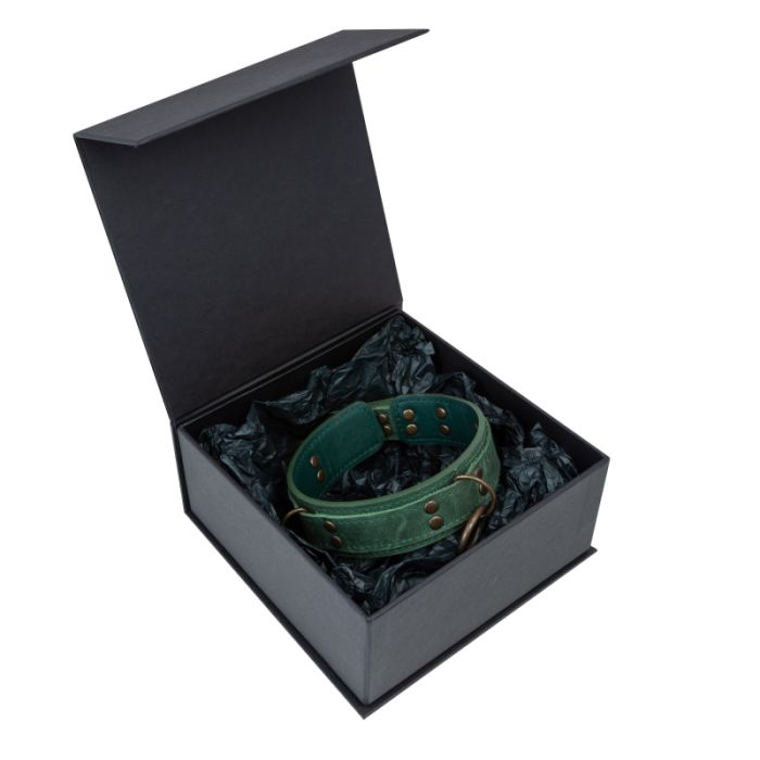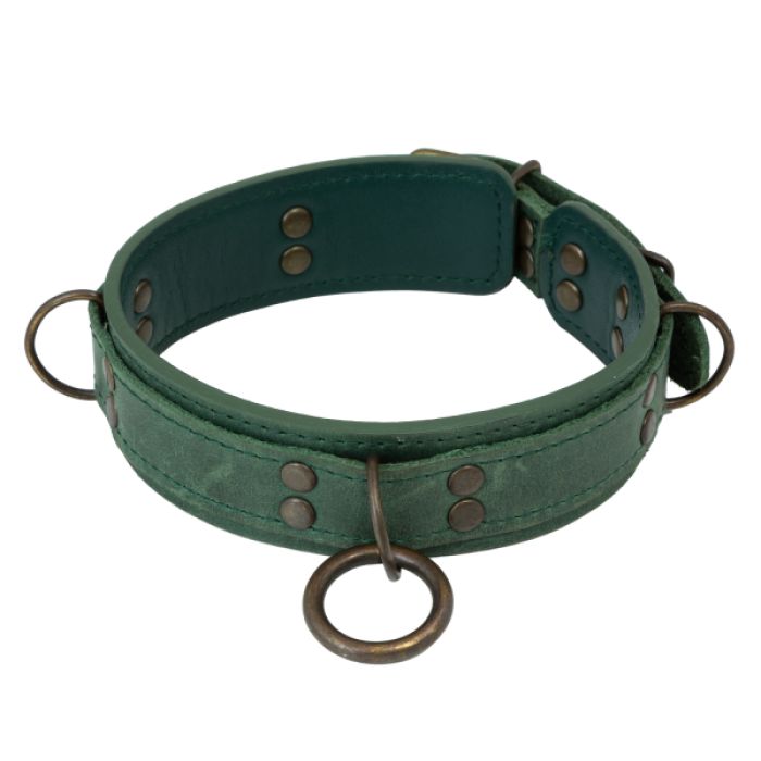 Зелений нашийник LOVECRAFT з напівкільцями і кільцем на центральній частині, для кріплення повідця, карабінів або мотузки для шібарі: