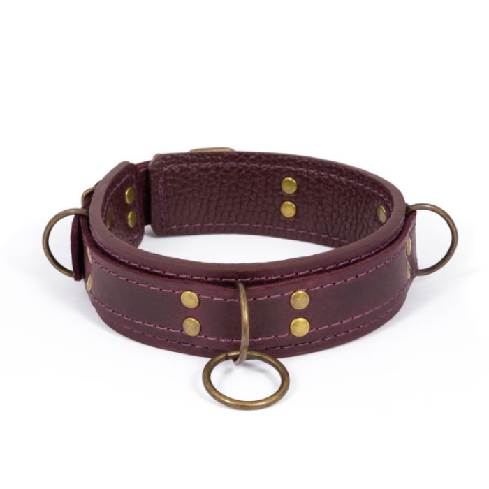 Фіолетовий нашийник LOVECRAFT з напівкільцями і кільцем на центральній частині, для кріплення повідця, карабінів або мотузки для шібарі: