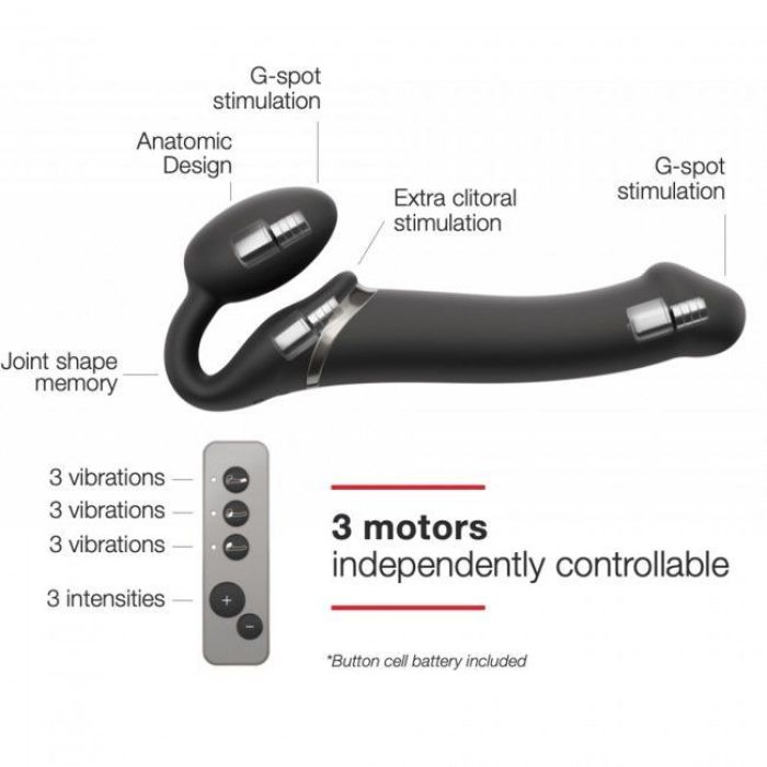 Одночасний оргазм під час використання страпона — це вже реальність! Пропонуємо безремінний вібраційний страпон Strap-On-Me Vibrating Black M — інноваційний пристрій із потрійною вібрацією.