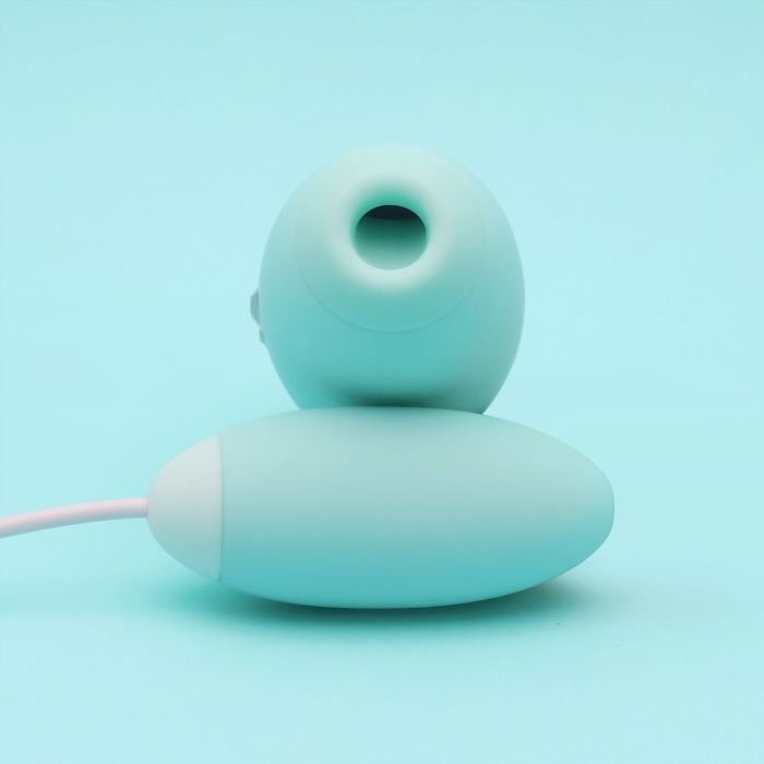 Вакуумний стимулятор з віброяйцем 2-в-1 KisToy Miss VV Cyan