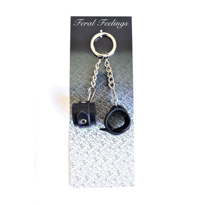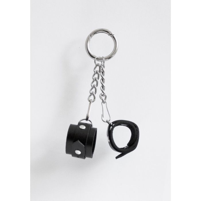 Міні-наручники з натуральної шкіри рослинного дублення, прикрашені хольнітенамі (заклепками). Кожен наручник кріпиться до основного кільця-карабіну ланцюжком і міні-карабіном, тому можна носити тільки один наручник, а другий - подарувати своєму партнеру у якості символу.