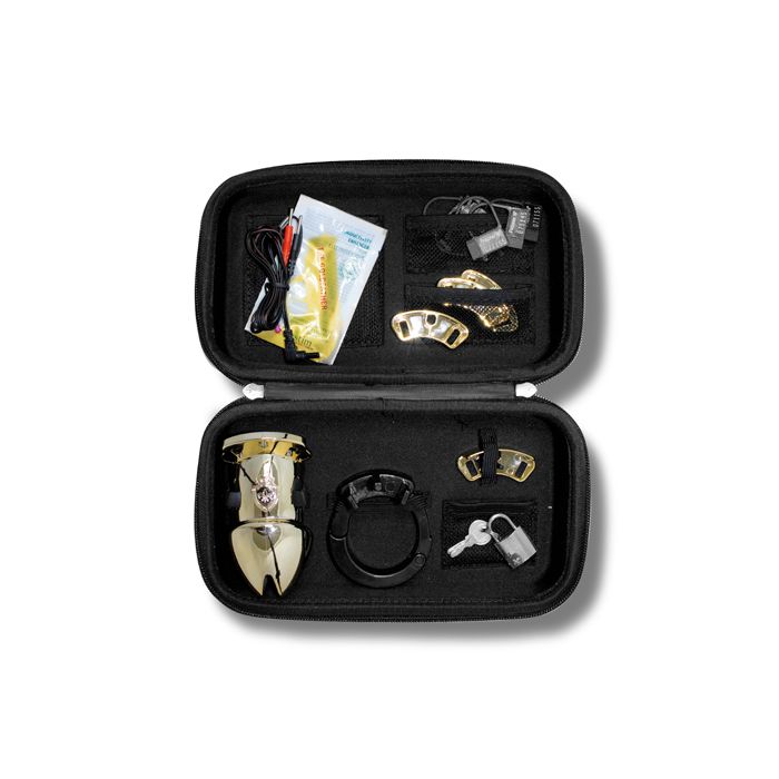 - електроди з двох сторін, щоб підключити їх до електростимулятора (продається окремо) і влаштувати сеанс солодкого покарання за непослух;