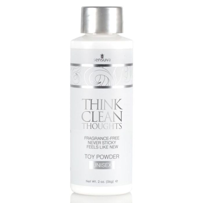 Sensuva Think Clean Thoughts Toy Powder — без запаху, повністю натуральна пудра на основі кукурудзяного крохмалю для догляду за секс-іграшками. Допомагає зберігати поверхню сухою та шовковистою, зменшує липкість і захищає від налипання ворсу та пилу під час зберігання. Особливо корисна для виробів із термопластичного еластомеру (TPE), кібершкіри та інших реалістичних матеріалів.
