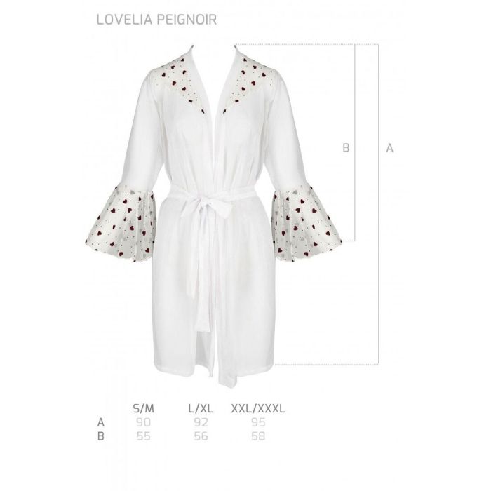 Повітряний пеньюар LOVELIA PEIGNOIR white S/M - Passion відрізняється вільним комфортним кроєм "на запах" і привабливими деталями. Зав'язується на пояс. Довговічний матеріал добре переносить делікатне прання.