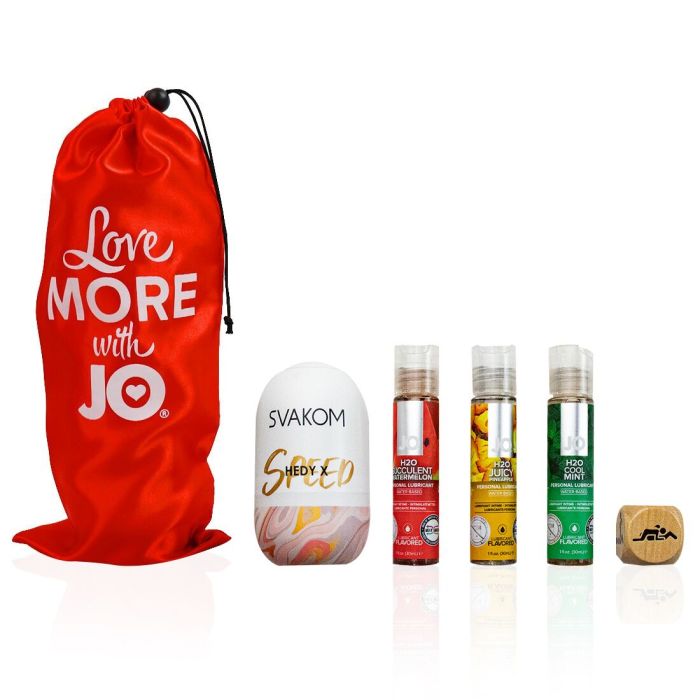 Упакований у фірмовий атласний мішечок червоного кольору System JO, набір стане шикарним подарунком з будь-якого приводу.