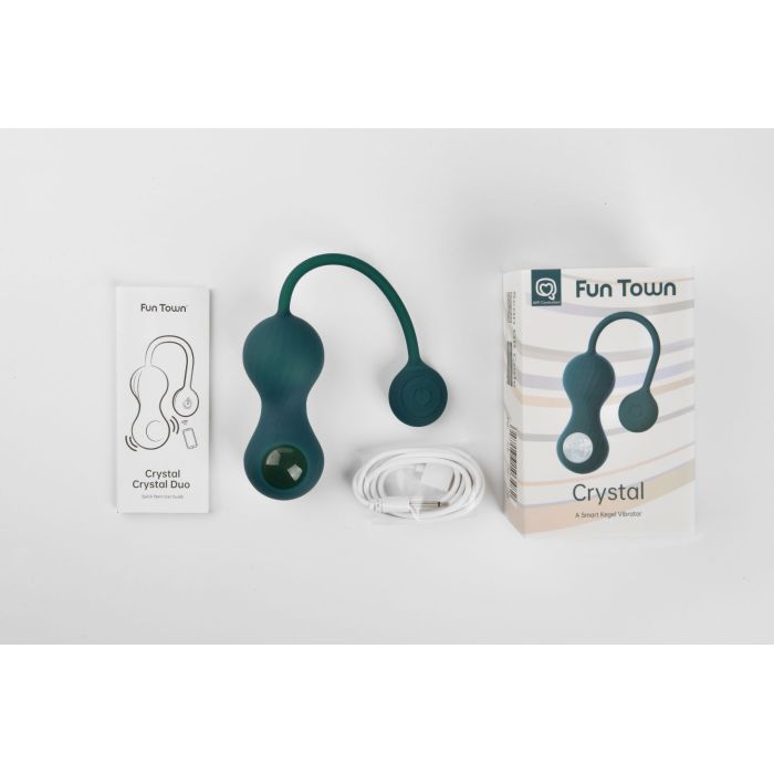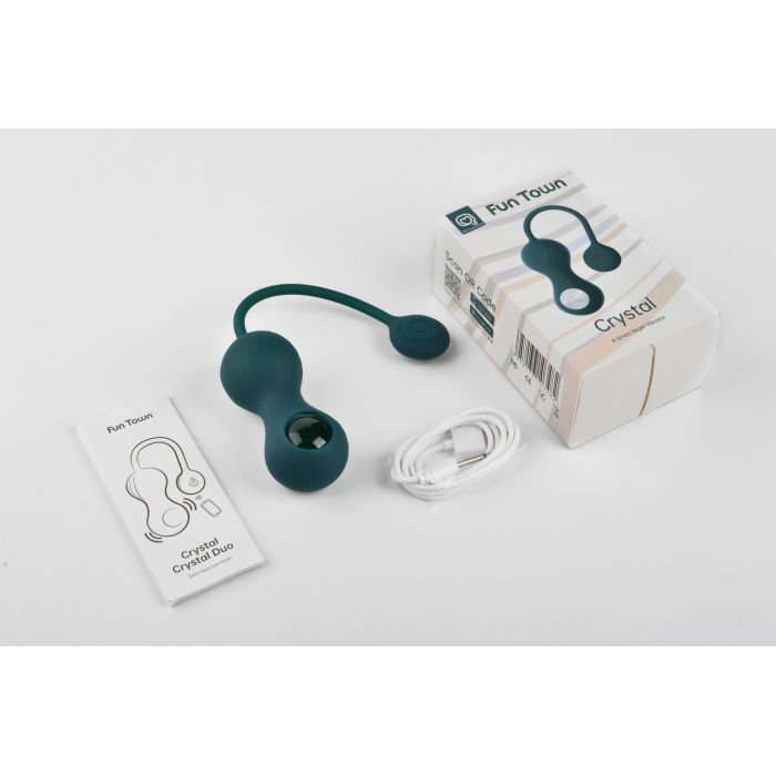 Вагінальні кульки з вібрацією Fun Town Crystal виготовлені з оксамитового матеріалу та мають зручний хвостик, що робить вилучення й ручне керування секс-іграшкою максимально комфортним та безпечним. Зупиняючи свій вибір на вагінальних кульках, ви отримуєте персонального тренера з вумбілдінгу у вашому смартфоні. Щоденні тренування протягом двох місяців гарантують потужний результат, а регулярне використання забезпечує сильні вагінальні м’язи в перспективі. Починати заняття можна без обтяжувача, переходячи на новий рівень поступово. Кнопка увімкнення розташована на кінці хвостика. Вона перемикає режими вібрації.