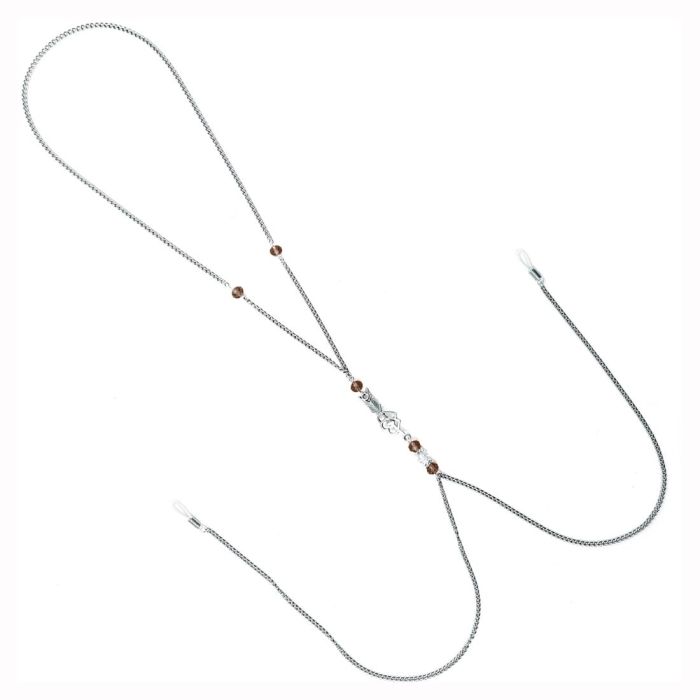 Спокуслива прикраса для сосків покликана притягувати погляд до плавних ліній жіночої шиї, ключиці та грудей. Металева прикраса обрамляє шию, спускаючись на груди та кріплячись на сосках за допомогою силіконових фіксаторів. Декоративні намистини та підвіска - стріла додають прикрасі шарму, роблячи її основним акцентом на жіночому тілі.
