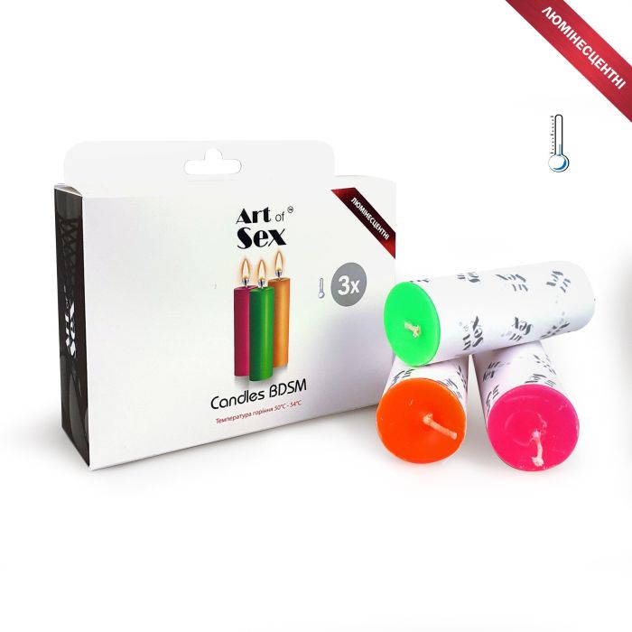 Набір воскових свічок Art of Sex size S 10 см (3 шт), низькотемпературні, люмінісцентні