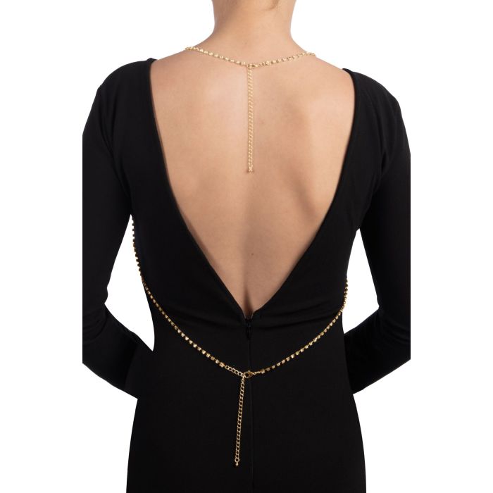 За допомогою прикрас жінка розповідає свою історію та відкриває частину своєї особистості. Розкажіть вашу історію, купіть золотистий ланцюжок для бюста Bijoux Pour Toi - Elena Gold. Елегантний аксесуар із ювелірного сплаву та розсипом страз складається з двох тонких ланцюжків, які починаються на шиї, перехрещуються під грудьми та закінчуються внизу спини.