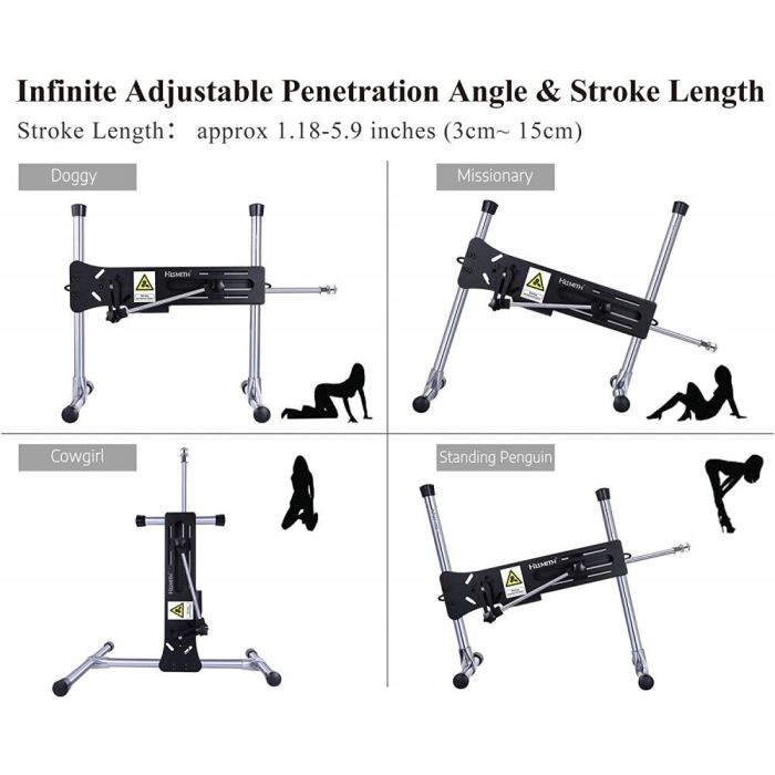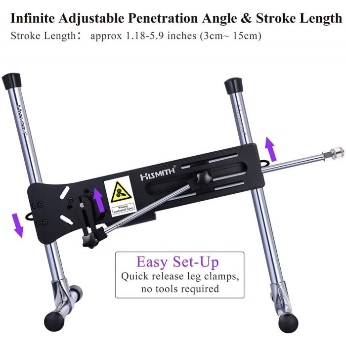 Ви можете налаштовувати висоту (від 12 до 33 см), кут проникнення (45–90°) та довжину фрикцій (3–15 см), обираючи ідеальні параметри саме для себе. У комплекті є реалістичний силіконовий дилдо (21 см загальної довжини, 17 см робочої, діаметр 3,5 см), але конструкція сумісна з будь-якими іграшками Hismith (система KlicLok) та навіть з іншими моделями через перехідники. Керування максимально просте завдяки блоку з довгим дротом та плавному регулятору швидкості.