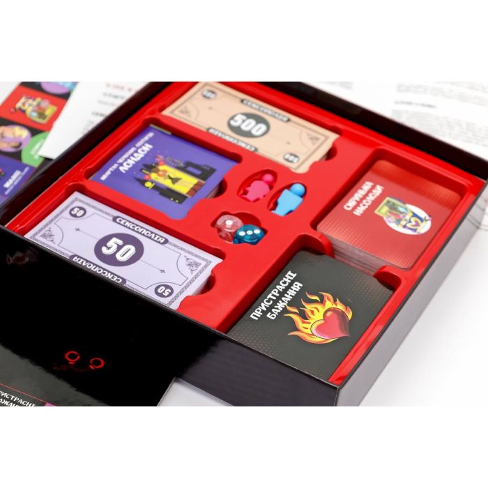 Також в процесі гри можна купувати фішки часу, які збільшують тривалість виконуваного завдання. Всі завдання різного ступеня відвертості, зухвалості та сексуальності, іноді з легким відтінком вульгарності. Від легких поцілунків до... Відкрийте коробку і самі все дізнаєтеся!