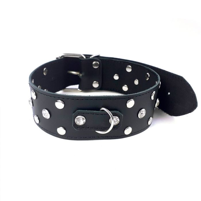 Нашийник із натуральної шкіри з заклепками та стразами Art of Sex - Jenna Collor, чорний — нашийник з оригінальним декором у вигляді страз і заклепок. Виготовлений із натуральної шкіри, з можливістю регулювати нашийник під розмір шиї. Комфортний і стильний нашийник вдало поєднується з БДСМ-атрибутикою з натуральної шкіри, допомагаючи реалізувати найсміливіші фантазії.