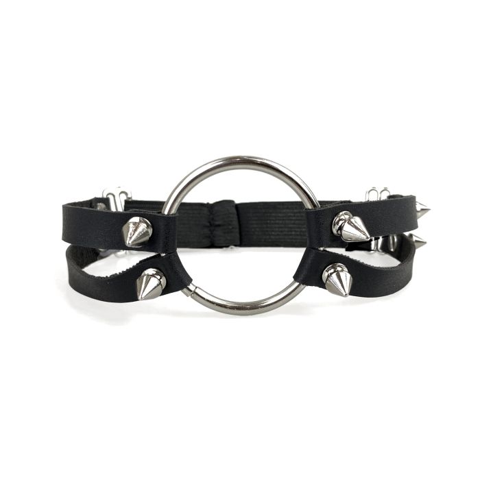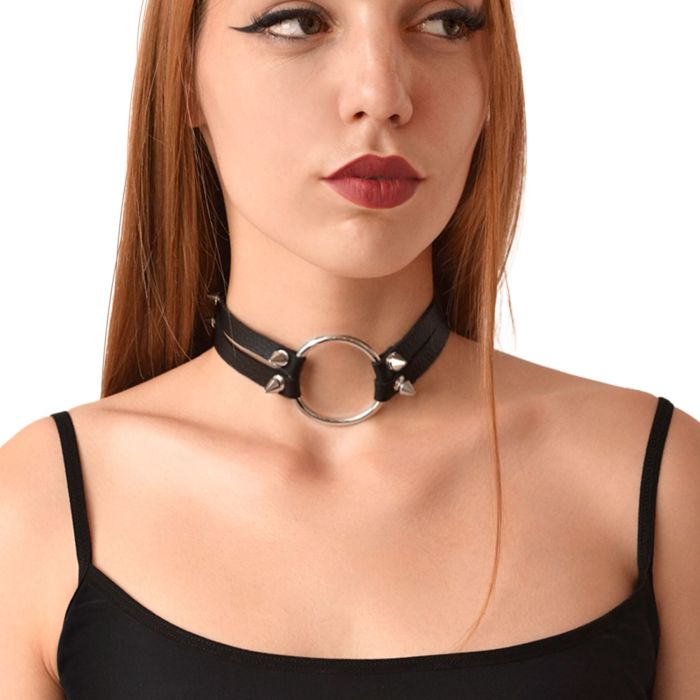 Чокер із металевим кільцем та шипами з натуральної шкіри Art of Sex — Ruby, колір чорний