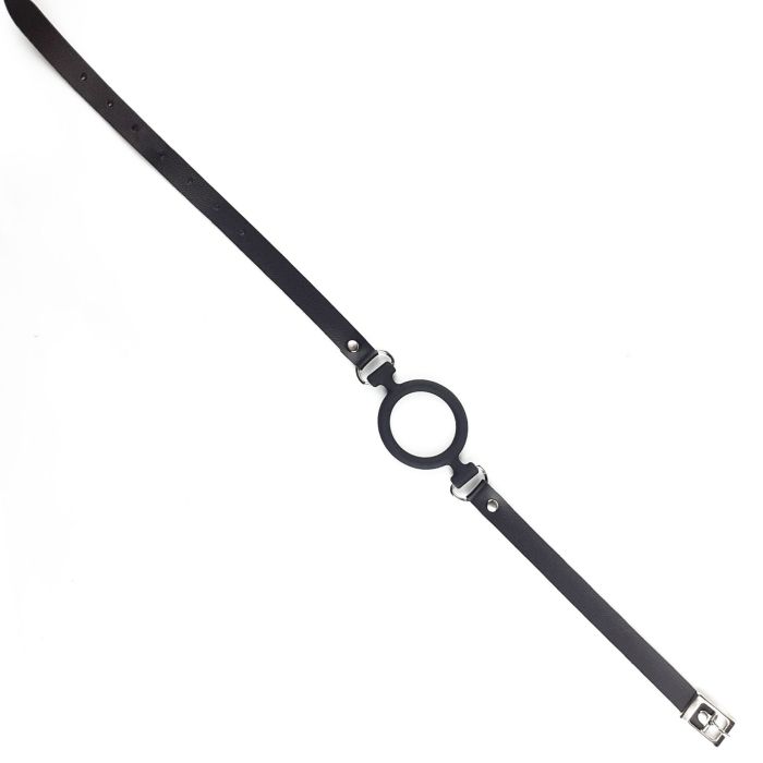 Кляп — силіконове кільце, натуральна шкіра, Gag Ring, внутрішній діаметр кільця 40 мм, чорний