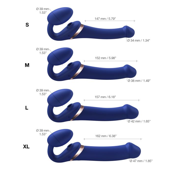 Безремінний вібрострапон з вакуумною стимуляцією Strap-On-Me MULTI ORGASM Blue L, регульований