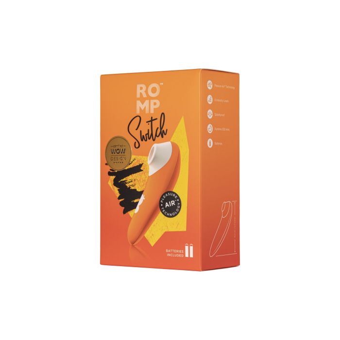 Вакуумний стимулятор Romp Switch — простий у використанні кліторальний вібратор з технологією Pleasure Air Technology™, що стимулює клітор делікатними змінами повітряного тиску. Модель Switch повністю повторює дизайн стимулятора Shine, але має кілька відмінностей: живлення від батарейок замість акумулятора, час роботи до 5 годин на одному комплекті елементів живлення (проти 45 хвилин у акумуляторної версії), 6 рівнів інтенсивності замість 10 та нижчий рівень водозахисту. Якщо версію з акумулятором можна брати з собою у ванну, то корпус Switch на батарейках дозволено лише протирати вологою серветкою або очищати спеціальними засобами для секс-іграшок. Водночас це не ускладнює догляд, адже обидві моделі мають знімну насадку з гігієнічного силікону, яку легко мити під проточною водою.