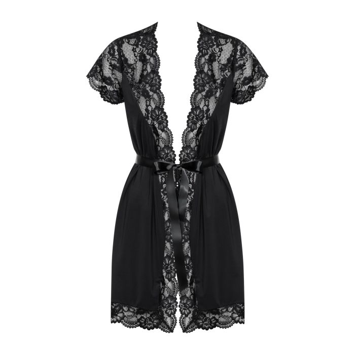 Сатиновий відкритий пеньюар на поясі Obsessive 810-PEI–1 peignoir black S/M, чорний