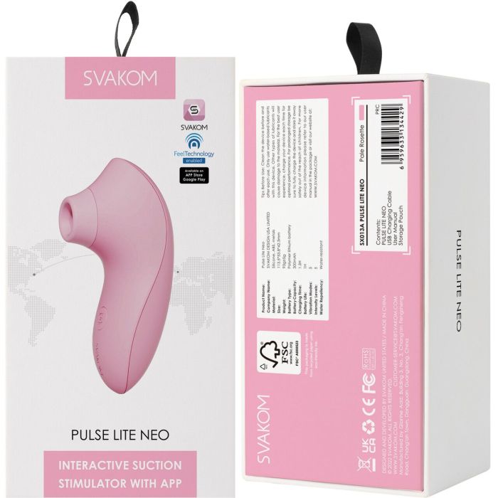 Компактні розміри (11,4 × 5,5 × 4,2 см), мала вага (93 г) і повна водонепроникність IPX7роблять Svakom Pulse Lite Neo ідеальним для використання вдома чи в подорожах. Акумулятор забезпечує до 1 години роботи, заряджається за 0,8–1,5 години.