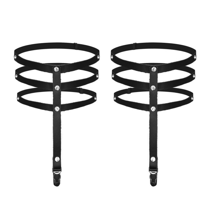 Гартери зі стразами Art of Sex — Floy, натуральна шкіра, розмір XS-2XL, колір чорний