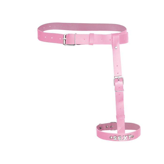 Гартер на ногу Art of Sex — Naomi з написом SEXY, натуральна шкіра, розмір XS-2XL, колір рожевий