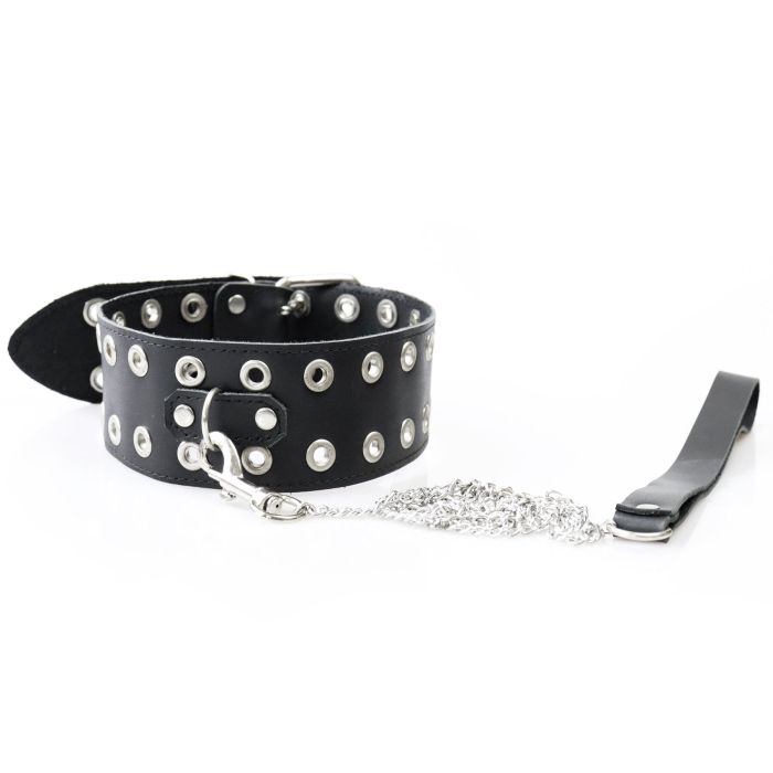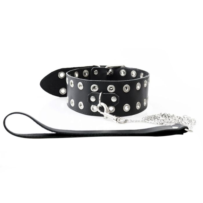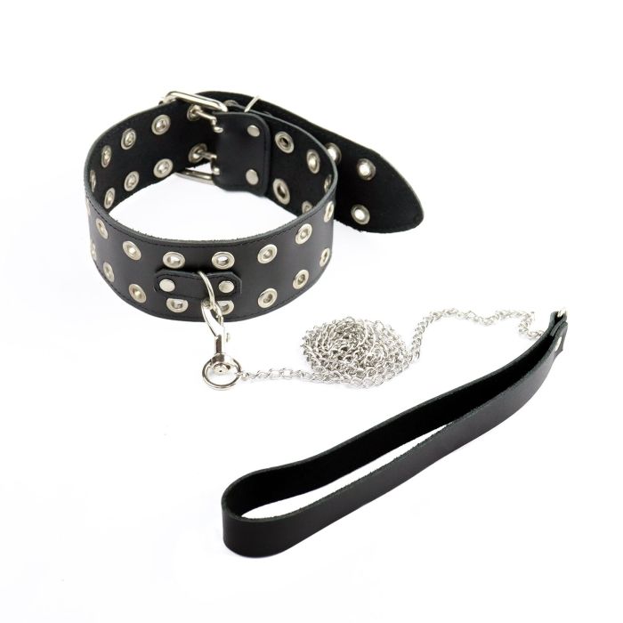 Нашийник Art of Sex — Tessa з повідцем із натуральної шкіри, колір чорний