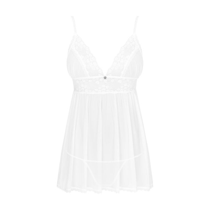 Ви точно закохаєтеся в пеньюар Obsessive Heavenlly babydoll & thong з першого погляду! Цей вражаючий набір поєднує в собі красу та функціональність, створений для того, щоб розпалити пристрасть.