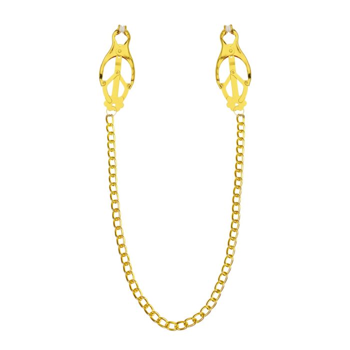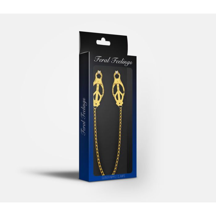 Затискачі для сосків з ланцюжком Feral Feelings — Clover nipple clamps, золото/білий