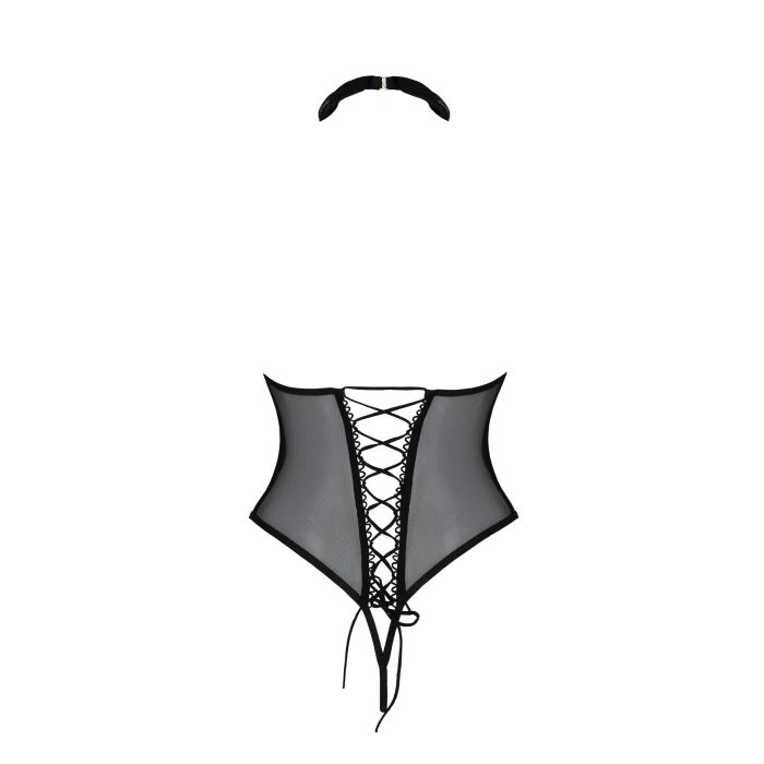 Бюстгальтер з відкритими чашками ніжно оголює соски, а елегантний чокер у вигляді коміра підкреслює вашу сексуальність та пробуджує найзаповітніші фантазії. Хто завгодно буде в захваті від вашого вигляду!