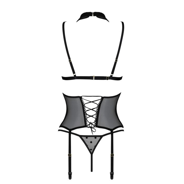 Якщо ви шукаєте білизну, яка підкреслить вашу сексуальність і допоможе створити атмосферу незабутньої пристрасної ночі, корсет із відкритими грудьми DOMINICA CORSET від Passion — це саме те, що вам потрібно. Цей розкішний комплект у чорному та бежевому кольорі містить корсет із пажами для панчіх і відверті стрінги, що доповнюють чуттєвий образ.