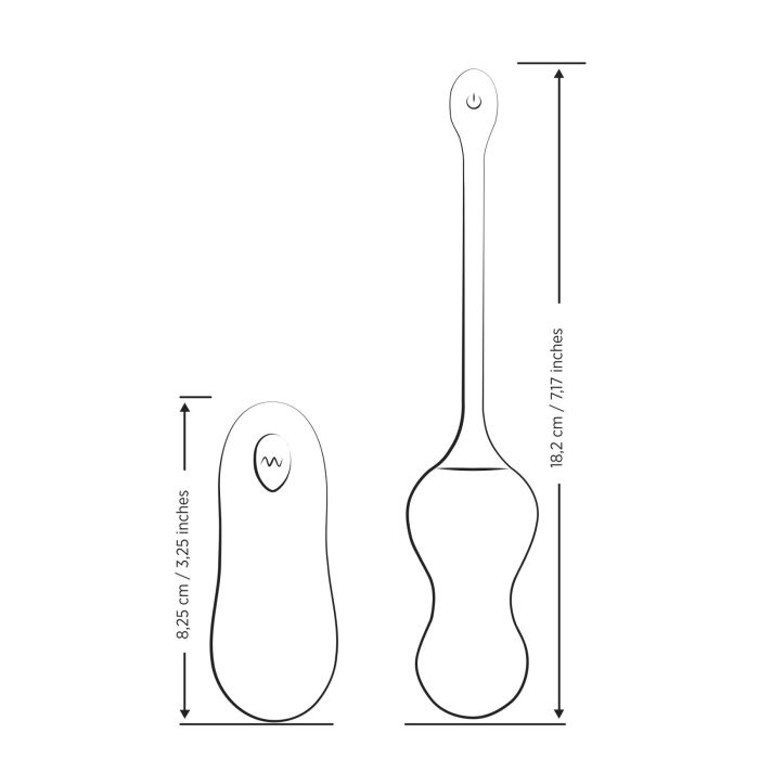 Розміри віброяйця: загальна довжина 18,2 см, ввідна довжина 7,5 см, діаметри кульок 3 та 3,5 см.