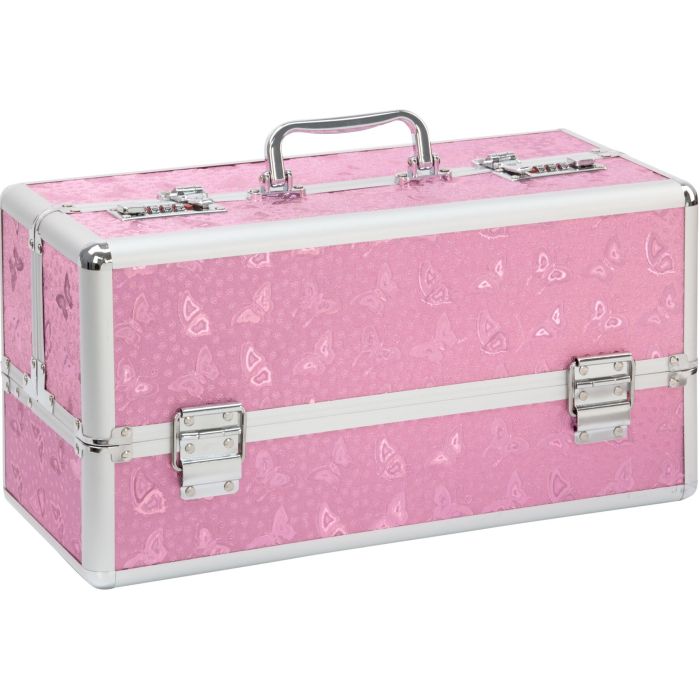 Кейс для зберігання секс-іграшок BMS Factory Large Lokable Vibrator Case — містка валізка ніжно-рожевого кольору з візерунком метеликів для акуратного та безпечного зберігання колекції девайсів. У порівнянні з моделлю The Toy Chest Lokable Vibrator Case ця версія має збільшений розмір і вміщує більше аксесуарів, водночас приховуючи їх від сторонніх очей і захищаючи від вологи, пилу та сонячного світла.