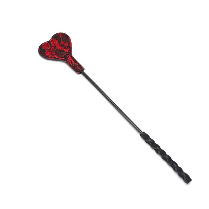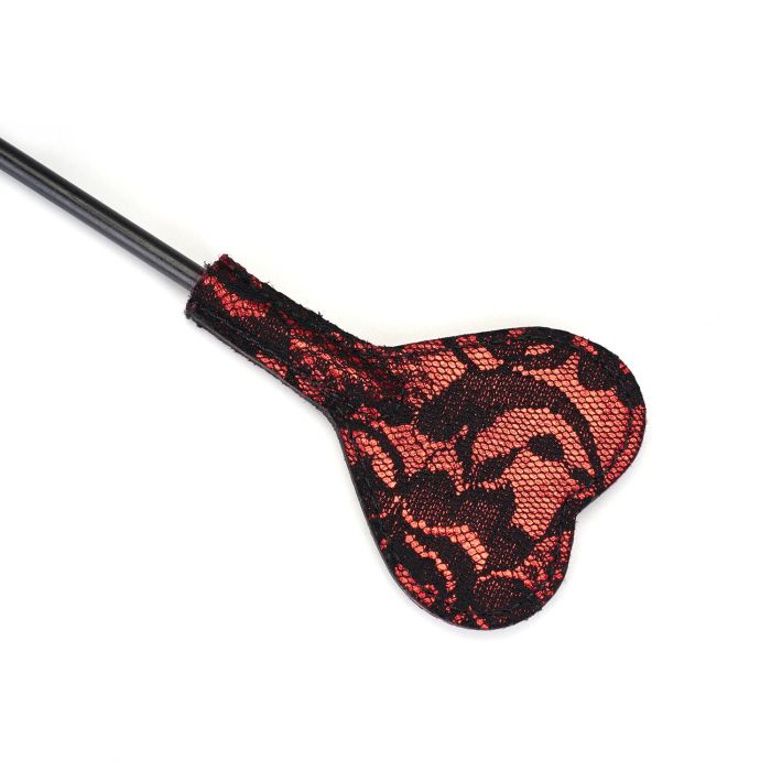 Візьміть ситуацію під контроль із цим стильним аксесуаром, створеним для захопливих ігор. Виготовлений із вишуканого мережива та рубіново-червоної веганської шкіри, ця ляскалка поєднує естетику та функціональність, додаючи особливого шарму вашим експериментам.