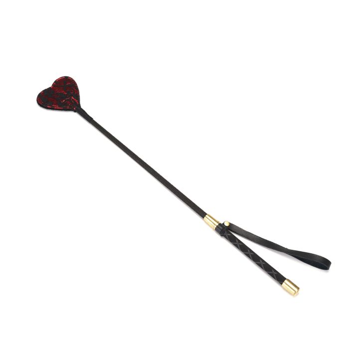Доповніть свою колекцію яскравим аксесуаром, що поєднує елегантність і функціональність. Ця ляскалка, виготовлена з розкішного мережива та рубіново-червоної веганської шкіри - вона стане ефектним акцентом у ваших чуттєвих експериментах.