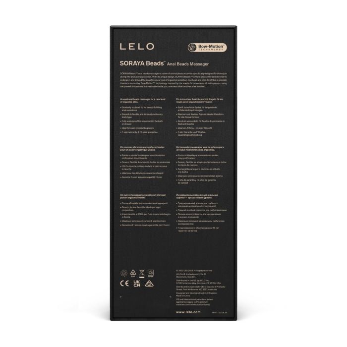 LELO Soraya Beads Black — це гармонійне поєднання естетики, технології та насолоди. Ідеальний вибір для тих, хто хоче відкрити нові грані чуттєвості та насолодитися делікатною, але потужною анальною стимуляцією.