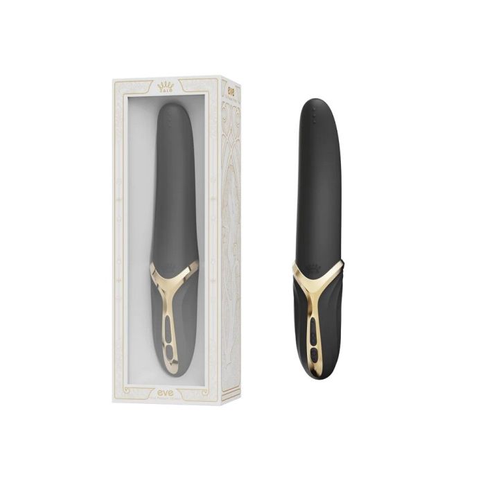 Дизайн EVE — це про преміальність і комфорт: витончені лінії, золотисті акценти та текстуроване руків’я, яке зручно тримати навіть під час активної гри. М’якість девайсу забезпечує товстий шар інноваційного 5A liquid silicon — особливо ніжним відчувається кінчик, який і створює ту саму особливу «язикову» стимуляцію. Два мотори працюють одночасно: один відповідає за вібрації, інший — за ротацію. А підігрів додає реалістичності й комфорту: максимальна температура досягається приблизно за 5 хвилин, але нагрівання можна зупинити в будь-який момент.