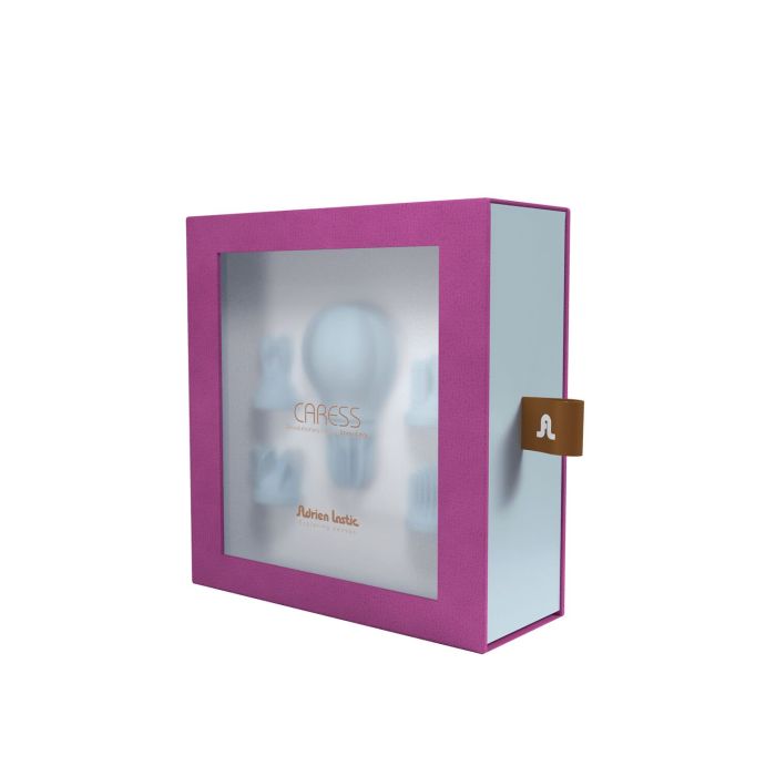 Основна особливість Adrien Lastic Caress — наявність 5 змінних насадок, які дозволяють варіювати характер стимуляції. Передбачено 1 режим вібрації та 10 режимів обертання. Додаткові стимулюючі вусики посилюють контакт із чутливими зонами. Модель підходить для стимуляції клітора, сосків та інших ділянок тіла.