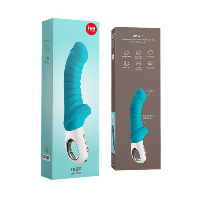 Якщо ви хочете відчути більше, ніж звичайний гладенький вібратор, рекомендуємо придбати вібратор для зони G Fun Factory TIGER. Його ребриста поверхня створює незвичайні хвилеподібні відчуття під час кожного руху вібратора, а спеціальний виступ-стопер дозволяє використовувати його також для анальної стимуляції. Гнучкий стовбур комфортно розміщується всередині, а вигнутий кінчик точно потрапляє на зону G (або простату під час анального використання). Мотор працює в 6 режимах та на 6 швидкостях, створюючи глибокі вібрації. Вібратор водостійкий.