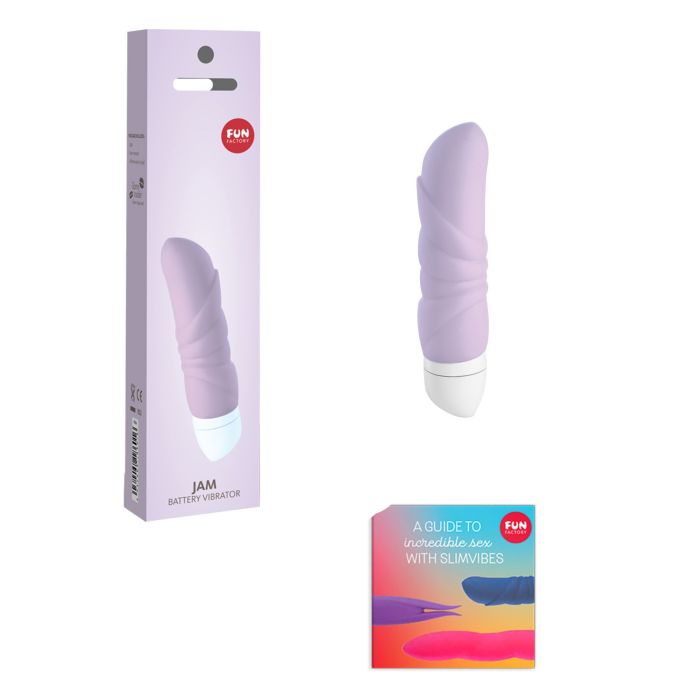 Як першу інтимну іграшку або стильний і корисний подарунок рекомендуємо купити мінівібратор Fun Factory JAM. Компактний і рельєфний, він чудово підходить для стимуляції різних ерогенних зон. Завдяки довжині 12,6 см і конусоподібній формі, іграшка комфортна у використанні. Текстурована оксамитова поверхня забезпечує приємні відчуття, водонепроникний корпус дозволяє насолоджуватися нею у ванні, а компактні розміри — брати з собою в подорож.