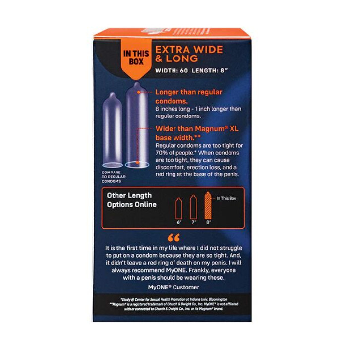 Коли звичайні презервативи не підходять — MyONE Extra Wide & Long стане саме тим, що потрібно. Розроблені для чоловіків, яким потрібен більший розмір без компромісів у комфорті, ці презервативи забезпечують простір, на який можна покластися.