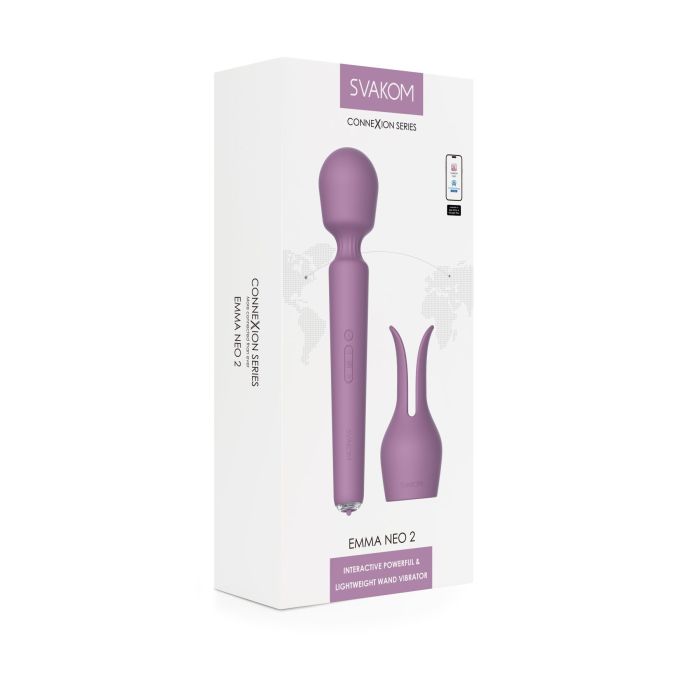Інтерактивний вібромасажер з підігрівом Svakom Emma Neo 2 — оновлена версія популярної моделі Emma Neo, яка стала ще потужнішою, зручнішою та функціональнішою. Завдяки класичній формі ванд-масажера він підходить як для розслаблювального масажу різних зон тіла, так і для чуттєвої стимуляції ерогенних зон.